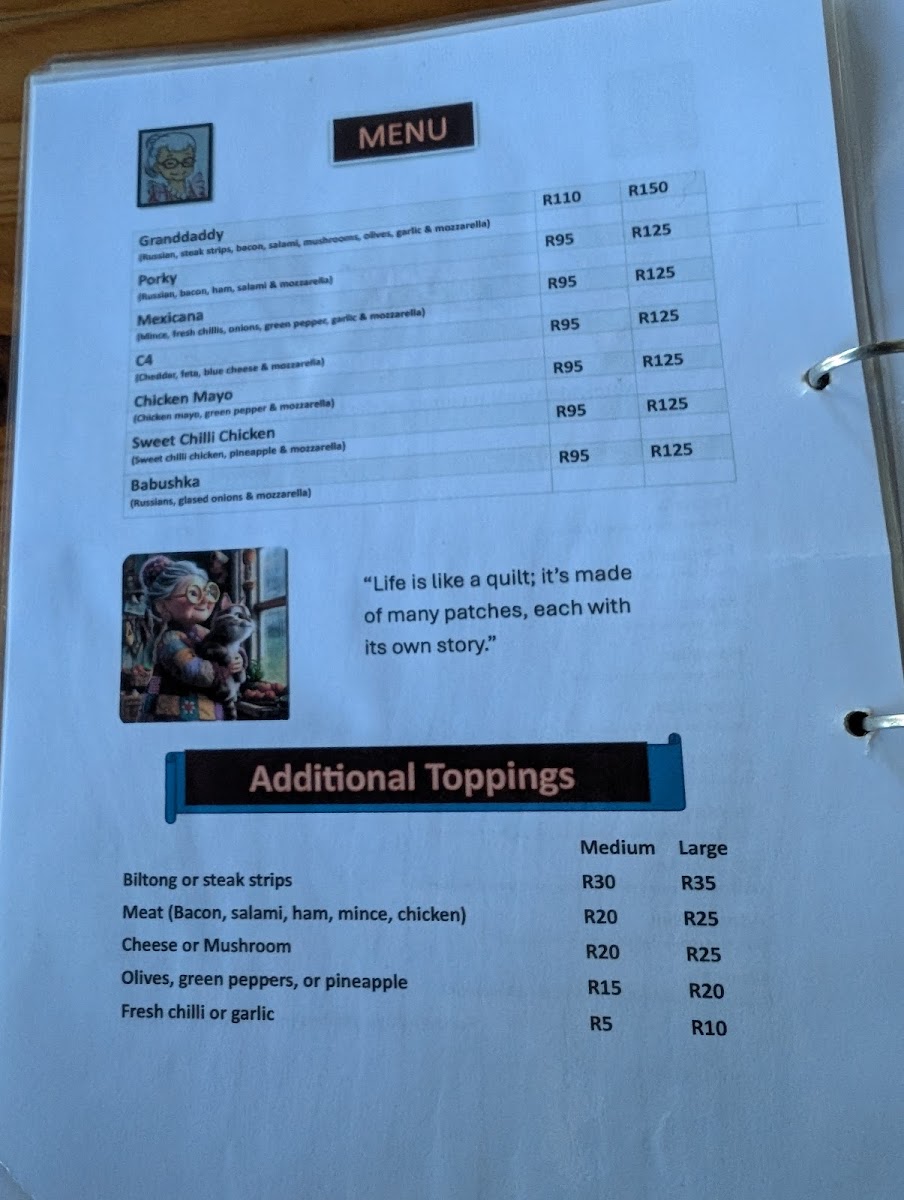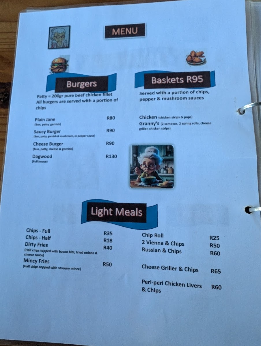 Granny's Coffee Shop Pizzeria and Takeaway offers a delightful and diverse menu that caters to a wide variety of tastes. For those looking to enjoy a warm, comforting drink, the Coffee and Condensed Milk is a must-try, perfect for anyone who loves a rich and sweet twist to their coffee. If you're in the mood for something savory, the Cheese Burger is a hearty option that promises to satisfy your hunger with its generous portion and delicious flavor. Another great choice for a quick snack is the Chicken Liver Wrap, offering a unique blend of tender chicken liver wrapped in a soft, flavorful package.